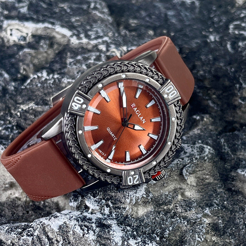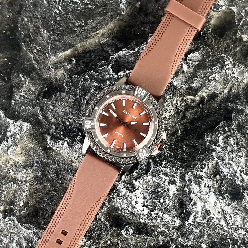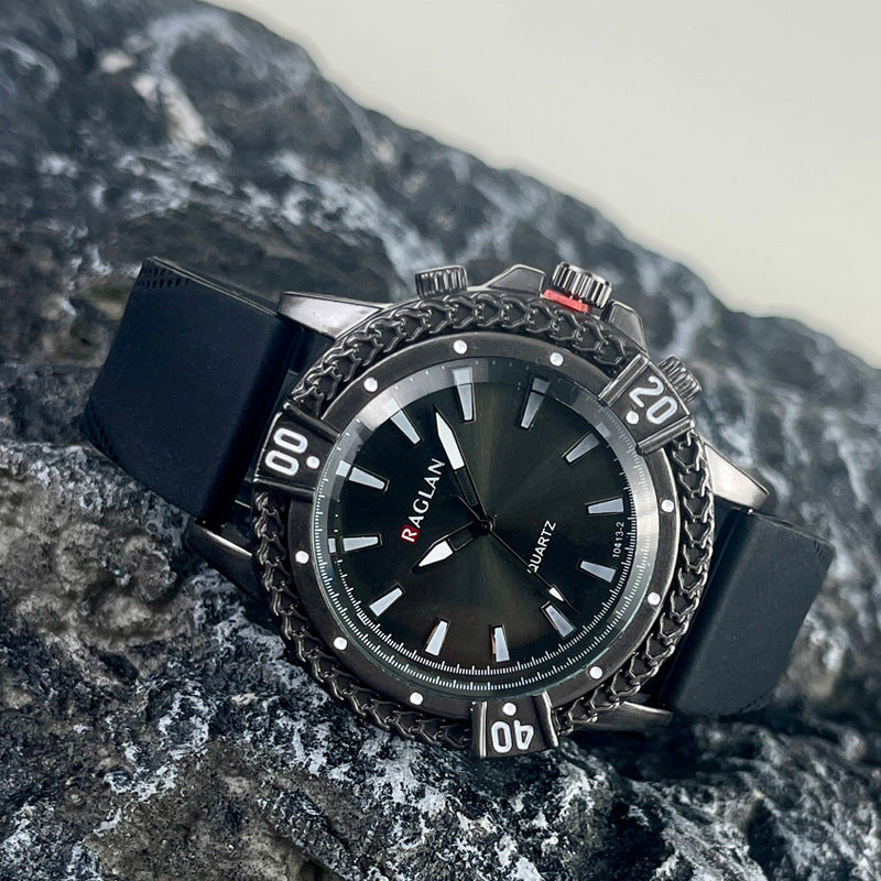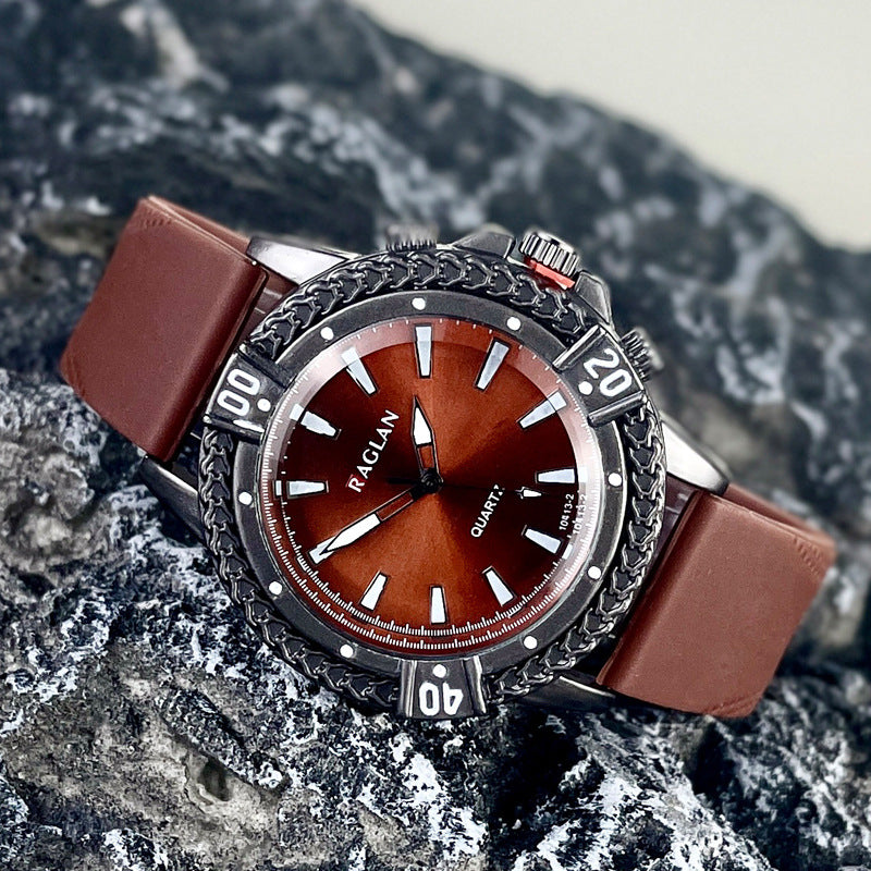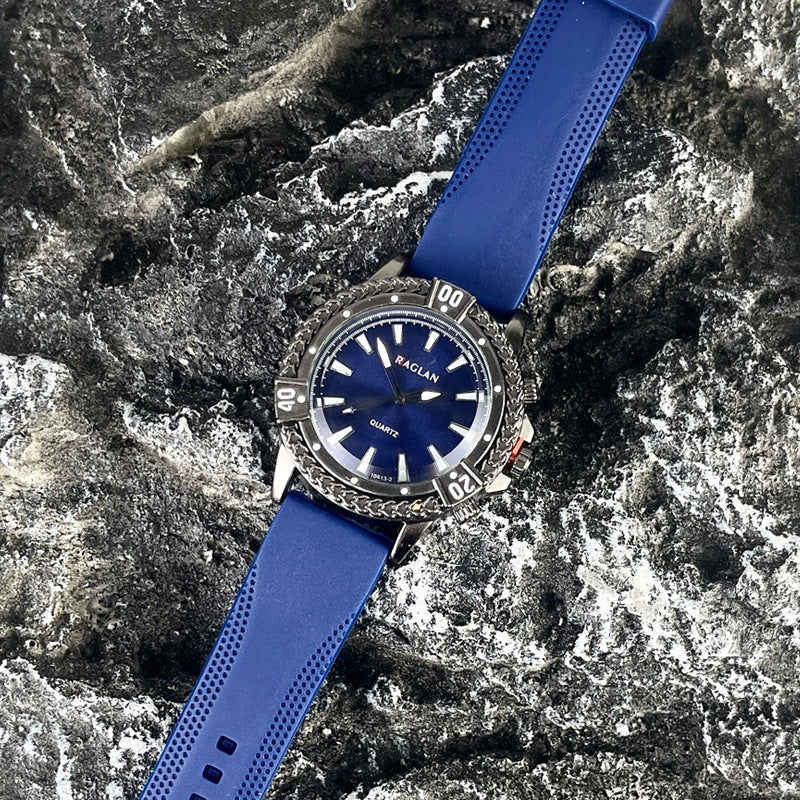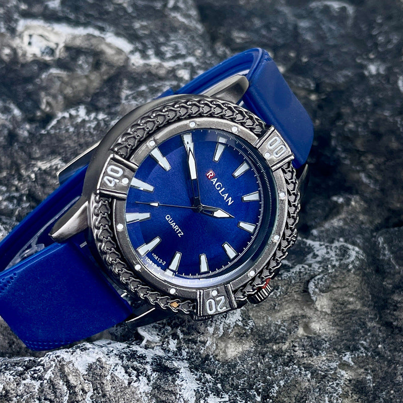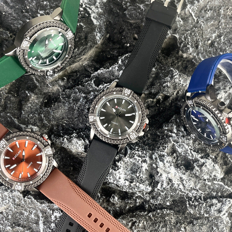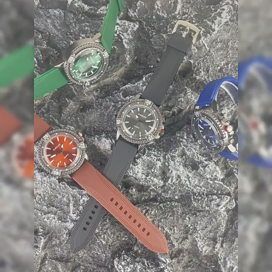 This men’s quartz watch features a 43mm round green dial with a soft and durable silicone strap. Designed for sporty and casual wear, it offers lightweight comfort and reliable timekeeping for daily use, commuting, and outdoor activities.