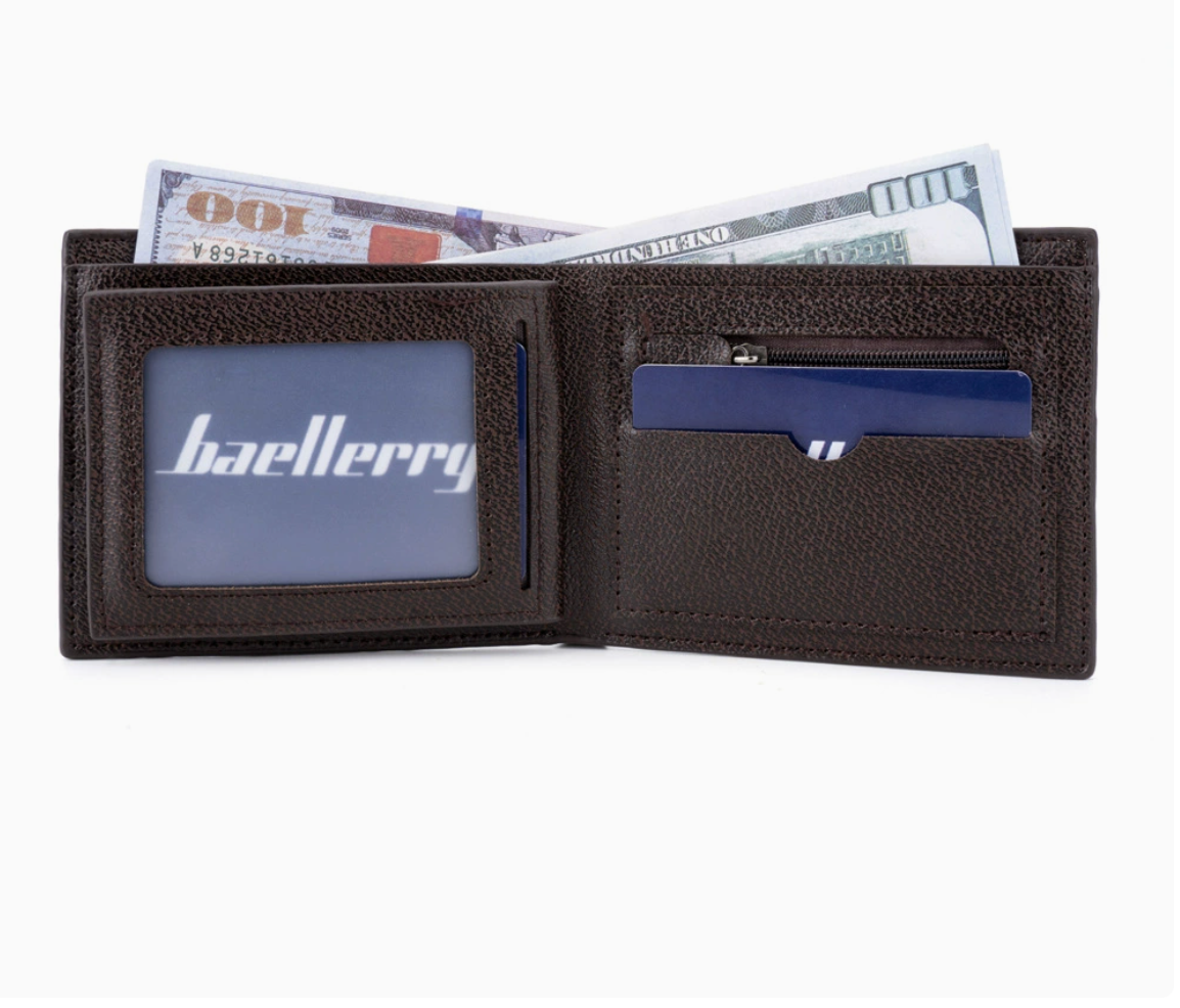 This Baellerry men’s wallet features a clean, minimalist design with a slim profile. Although lightweight, it provides excellent storage capacity. Made from premium PU leather with a soft, comfortable texture, complemented by fine stitching and a stylish logo.