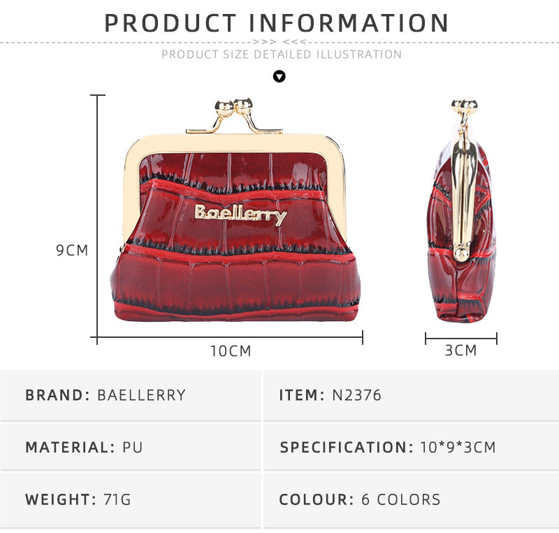This Baellerry vintage kiss-lock coin purse features a classic crocodile-pattern PU leather with a shiny metal frame. Compact yet functional, it easily stores coins, folded bills, cards, lipstick, or small accessories.